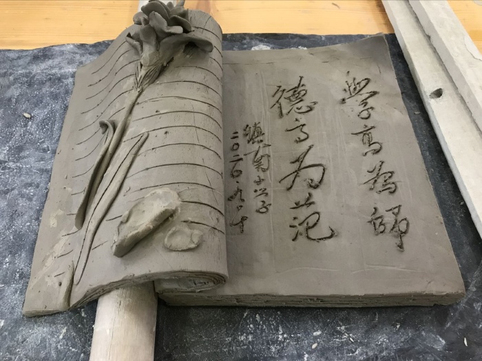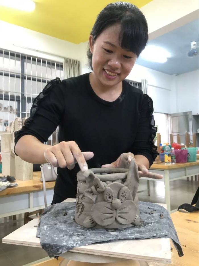 接着,林美婷老师给跟岗老师讲解陶艺的技法,现场示范制作陶罐,跟岗教师以高涨、饱满的热情认真聆听、细心地制作他们喜欢的陶艺作品,有的做实用陶罐,有的做动物泥玩具,有的做了一本有意义“陶书”,铭刻教育的初心……他们一边做一边积极地和陶艺老师互动交流,不断汲取陶艺的知识,互相分享教育的经验心得。通过这次活动,跟岗教师从远距离的校园文化观摩到近距离的泥巴触摸,再到一件件陶艺作品的呈现,让每位跟岗教师真切的感受到陶艺的乐趣,也感受到镇南陶艺教师的热情和专业水平,这样特别的培训和交流,也让镇南小学陶艺教师在教的同时收获了友情。