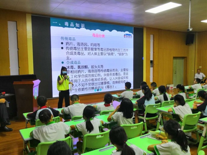 打印 |为了普及毒品危害知识,增加学生对毒品危害作用的了解,进而树立“远离毒品、珍爱生命”的思想观念,2020年9月4日,中山市清风自由人公益服务中心到曹二小学进行禁毒教育专题讲座,参与此次讲座的学生是曹二小学五年级全体学生。