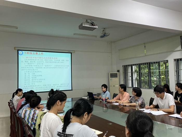 随后余校长也对下一阶段的工作进行了部署。她提出,10月份开始,升旗仪式由各班级负责主持,有学生国旗下讲话、节目表演等环节,为更多的学生提供展示的舞台。同时,对于班级文化建设的布置进行了细致地安排,提升了教室里各个墙面的主题教育作用。她还提出,下阶段还需抓好名班主任工作室以及班级、年级、校级家委会的建设,以多方位凝聚合力,最大程度发挥育人功能。最后,她希望班主任要在班级管理中做到“勤”“严”“细”,从而促使学生养成良好的习惯。