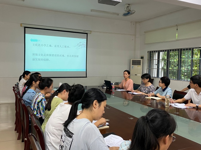 会议主要分为四个部分。首先由余明丽副主任进行特色班建设的经验分享。余主任强调:文化是办学之魂,是育人之根本。班级文化则是班级建设的灵魂,更是班级健康发展的保障,所以找准各班的班级特色,创建独特的班级文化势在必行。班级文化可以从显性文化如教室布置、标语张贴等方面营造学习氛围,从独特的班名、班徽、口号发挥环境文化的教育功能,更要从隐性文化入手,制定班级公约、一日常规等发挥班级精神文化的激励功能。余主任更是用自己创建“七彩乐园”特色班的经验生动地为大家讲解如何构建特色班的精神内核,如何从细节去逐步完善特色班建设,班主任们受益匪浅。