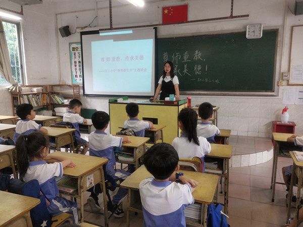 打印 |今年是我国第36个教师节,尊师重教是社会美德,是中华民族的优良传统,为了使学生了解我国素有“尊师重教”的传统,激发同学们对老师的热爱之情,古镇镇古二小学于2020年9月14日开展了关于“尊师重教,传承美德”的主题教育班会活动。