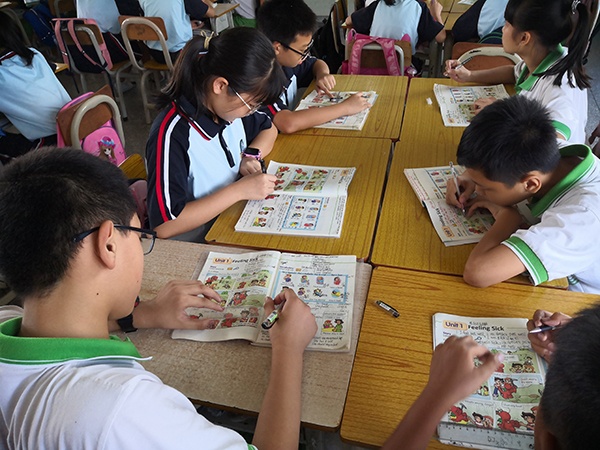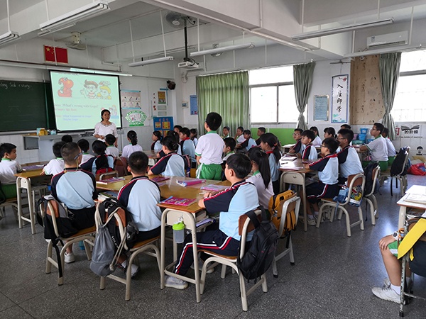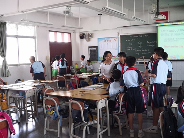 本次活动分为两个环节,第一环节由苏丽梅老师进行故事教学,以六年级上册第一单元《Feeling Sick》为课例。课堂伊始,苏老师以英语歌曲调动学生氛围,并用课本图片一步一步引出新问题,散发思维,引导学生分小组进行合作学习,从而输出课本内容。整节课教学环节紧扣,主题明确,充分激发了学生学习的兴趣,小组合作学习氛围浓厚。