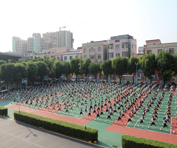 迎着朝阳,曹二小学30个班级千余名学子在大课间总指挥余洪芬老师强而有力的指令下迅速整齐集结。一个个方队,伴着音乐,在余老师的指挥下,在操场上井然有序地跑动起来,时而交汇,时而分开,像足了游戏中的贪吃蛇。学生步调一致,喊着响亮的口号,场面尤其壮观,同时还展现了气势如虹的武术操和动感十足的健美操,获得了观摩老师热烈的掌声,更是得到了慕名而来的顺德容山小学体育老师们的赞誉。