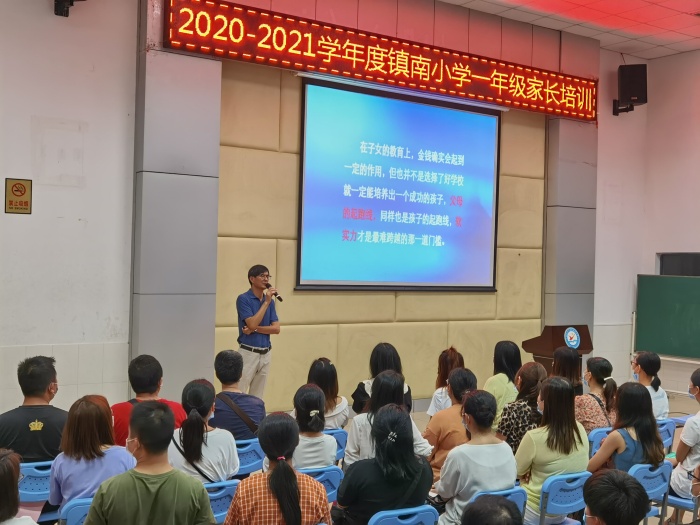 打印 |秋高气爽,金桂飘香。在这硕果累累的九月,镇南小学迎来了新一届的一年级。为了让孩子尽快适应学校生活,同时让家长对学校的建设、对孩子的教育进行进一步的了解,2020年9月17日晚上8点,镇南小学召开了一年级的新生家长会。