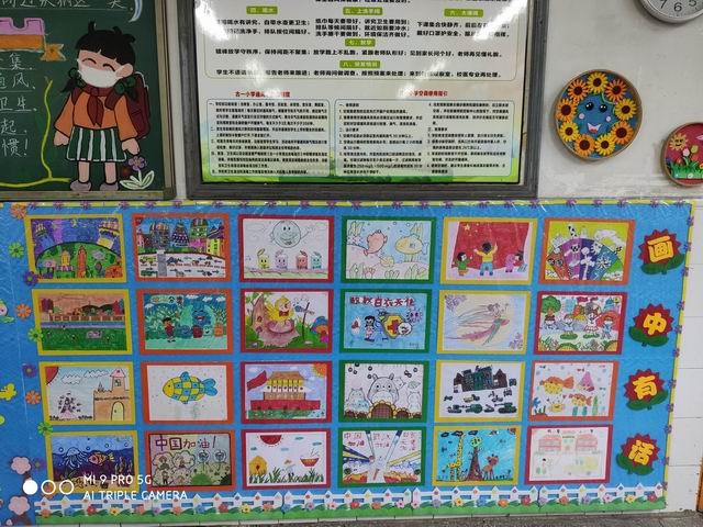 金秋十月,古一小学一(2)班也换上了光彩夺目的新装。进入一(2)班的正门,一个好看的班徽已经看出了一(2)班是一个很友爱的班级。班主任郭根香老师通过查找资料,设计样式,描绘出一幅幅精美的图画。教室的门前都设有别具一格的班牌,内容包括班徽、每月评选的文明班级奖牌、班主任寄语,这些让全班师生时刻不忘自己是集体中的一员,同时也显示着一(2)班坚不可摧的凝聚力。课室前面都设有班务管理栏,班务栏中,展示了本班的班级公约、学生值日表、班干职责、课程表等班级制度文化。课室两边的墙壁上都标有具有金话筒特色的班级标语及班歌,黑板报以“疫情防疫”为主题,内容充实、设计美观、结构合理。板报内容根据一(2)班建设主题进行选材,并采用不同艺术形式进行表现。特色展栏里记录着特色文化建设的点点滴滴;评比栏看到了班级成员力争上游的不懈劲头;画中有话读懂孩子们的童贞纯情;明日之星里体现着同学们的互相学习、天天向上的精神风貌;学习榜样更寄喻着孩子们的茁壮成长……