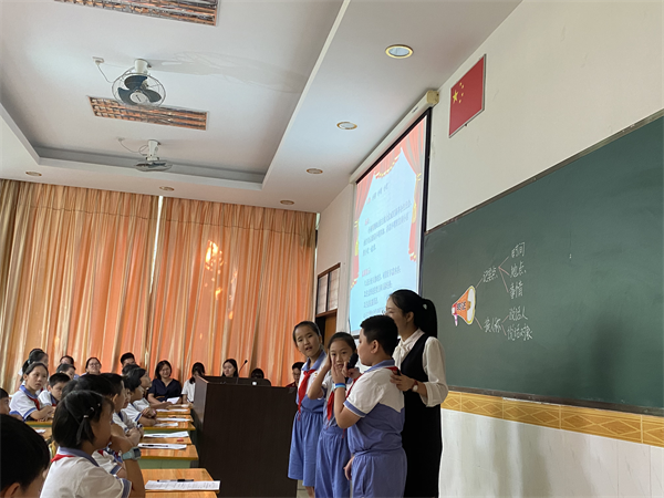曹二小学黄琳老师执教的四年级下册口语交际《转述》精彩纷呈。在课堂开始之前,黄琳老师化身小兔子,为孩子们带来了神奇的魔法,调动了现场的气氛,激发了学生的学习兴趣。课堂上,黄琳老师引领孩子们进入了童话世界,从老虎大王开大会的故事出发,深入浅出地解释“转述”的定义,并总结转述的要点。随后,通过创设情景,引导学生练习转述。最后,联系生活,让学生在具体情境中运用已学的知识应用转述,巩固这堂课所学的知识。整堂课在老师的引导下,孩子们的思维一次次被点燃,他们精彩的展示汇报,把课堂推向了一个又一个高潮,学生的表达能力得到了充分的训练和培养。