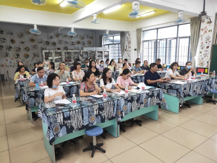 会议的开始孔国范老师就对本学年的美术中心教研组组长李桂萍老师进行了介绍,同时对中心教研组长的工作表示肯定,也期望新的中学组中心教研组长罗淑华老师能够继续带领老师们再创佳绩。接着,中小学中心教研组长李桂萍老师对上学年的工作进行了总结,对疫情期间参与制作网课的教师提出了表扬,对上学年喜获佳绩的师生表示肯定,李老师还把本学期的主要工作和活动安排作了详细的讲解,对本学期美术教研教学的方向有了很好的指引。最后是这次会议的重要内容,就是全体美术老师一起进行艺术测评的学习和探讨。首先由李老师和大家解读中山市中小学生美术素质测评细则,还组织大家观看了尹少淳教授的视频讲座,让大家从视频中对艺术测评细则有更多认识和想法,看完视频后李老师还把全镇美术老师分成了六个组进行艺术测评的探讨,镇南小学每一位老师都积极参与其中,并且积极发言,在整个过程中老师们都是收获满满。