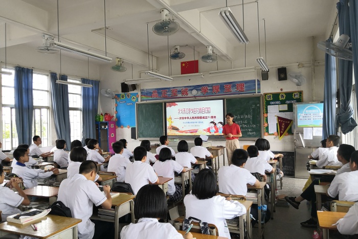 值祖国71华诞之际,曹步初级中学初三(5)班于2020年9月28日召开了以“爱国”为主题的班会活动。