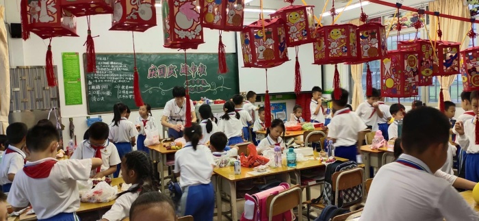 活动前,各班主任精心筹划,认真准备活动。活动中,学校各班级班主任通过视频、音乐、朗诵、讲故事等形式,让孩子们了解中秋节的传统文化,知晓中秋节的习俗趣事。在赏花灯、猜灯谜、吃月饼和柚子等活动的过程中,感悟团圆、和谐的幸福,增进同学之间的友谊,显得其乐融融。多种多样的活动让传统节日、传统习俗走进课堂,走入孩子们的心里。