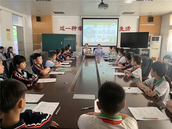 在英语科组老师们的共同努力下,最终确定了小组合作学习模式的方案,以及制定好了小主持人的主持稿,并且由苏丽梅老师,林冬梅老师,以及刘璐老师开始对四到六年级的小主持人开展了培训。