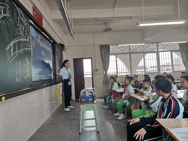 接着,第二部分是交流阅读单的内容,深入了解庄子的思想学派、分享庄子和惠子的故事、交流观看完视频《逍遥游》的感受。学生对新书的拆封迫切不已,每个小组轮流上台领书,合影留念。