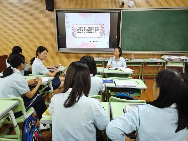 会议开始,课题主持人邵华老师就六年级刘裕梅老师即将要执教的“共读一本书”交流课课例《童话庄子》的工作进行了课件设计、教案讨论、阅读单设计、撰写阅读感想心得等任务的统筹安排,并对课题组的全体成员进行了具体的分工,参会人员认真聆听,会议气氛良好。