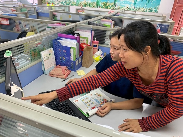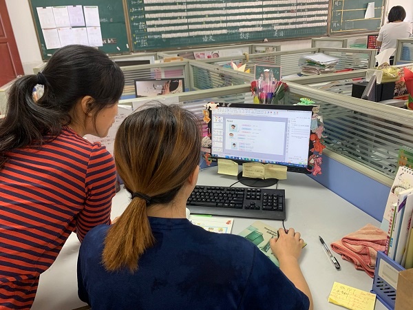 苏老师的这一教学理念与曹二小学的教学改革理念不谋而合。 曹二小学在教学上继续推进的小组合作学习模式,一直在尝试"导学"教学模式,。苏老师在平时的教学过程中发现在英语导学教学中,"导学稿"的设计至关重要,10月12日上午曹二小学英语科组长苏丽梅对刘璐老师进行了一对一的指导,对导学稿的设计进行了反复的探索和改进。