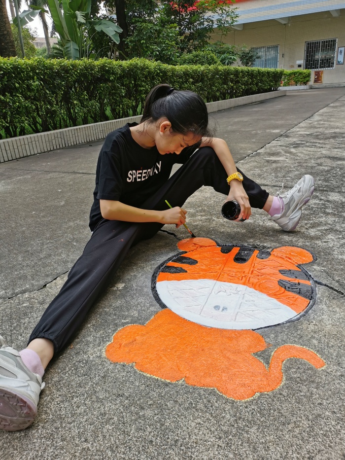 为响应学校号召,袁美欢老师带领学生结合校外艺术人事指导,以“珍惜粮食、远离浪费”为主题,设计绘制了本次校道绘画,其鲜明的颜色及其精美的图案引人注目,展现了海一小师生绘画风采。袁美欢教师结合“传统文化”教育,带领学生一起在下水盖上绘画十二生肖。在组织过程中,美术兴趣班成员踊跃报名,分组合作,默契配合,仅耗时两天就超预期、高质量完成了校道的绘制工作,努力为校园文化营造积极向上的文化氛围,同时也为美术兴趣班成员提供多样的学校实践机会。经过他们的努力,学校的面貌焕然一新。