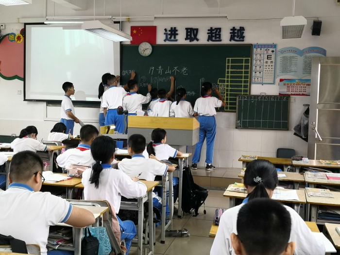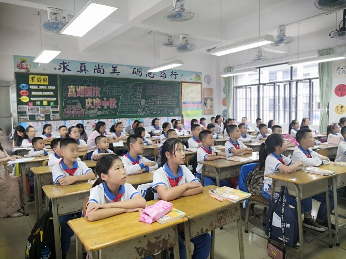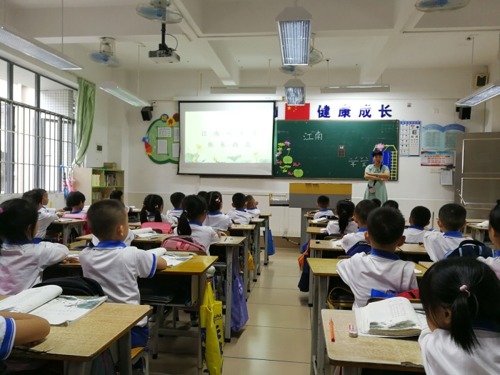 第一节课,各年级在备课组长的组织下,围绕科组的研讨主题,利用小组合作的形式开展“一师一课,一课一议”教学研讨活动。一年级许桂玲老师为大家带来了活泼有趣的《江南》;二年级陈绮琪老师带领孩子们共同领略《日月潭》的美丽景色;四年级的伍尚金老师用诙谐的语言带领大家学习了《蟋蟀的住宅》;在刘艳玲老师的带动下,五(4)班的孩子都沉浸在《父爱之舟》的感动中;在王红亚老师的引导下,六(4)班的孩子在《青山不老》的学习中,感受老人与青山共存的精神,让绿色流进每个孩子的心中。