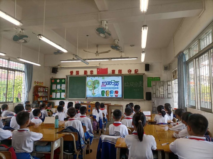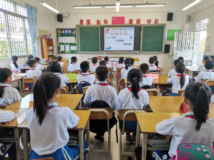 活动中,各班通过一个个震撼人心的视频让学生对日趋恶劣的环境形势有了更清晰的了解,从而深刻地认识到环保的重要性、紧迫性;同时结合具体事例向学生讲解生活中垃圾分类的标准、可回收垃圾的利用价值、有毒垃圾的危害、实行垃圾分类的重要意义等内容,号召学生从自身做起,学习并宣传分类投放垃圾,为资源循环利用贡献自己一份力量。