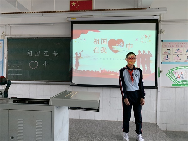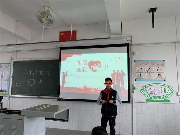集队、报数、出旗、唱队歌等一系列程序后,由苏丽梅老师激昂地说出活动主题:祖国在我心中,并深情地表达了自己的爱爱之情。她说:祖国是伟大的母亲,用甘甜的乳汁养育了无数中华儿女;祖国又像个孩子那么可爱,值得无数儿女去呵护她,为之奋斗,甚至牺牲生命也心甘情愿,在所不惜。苏老师的深情演说,很成功了激发起孩子们的爱国热情。