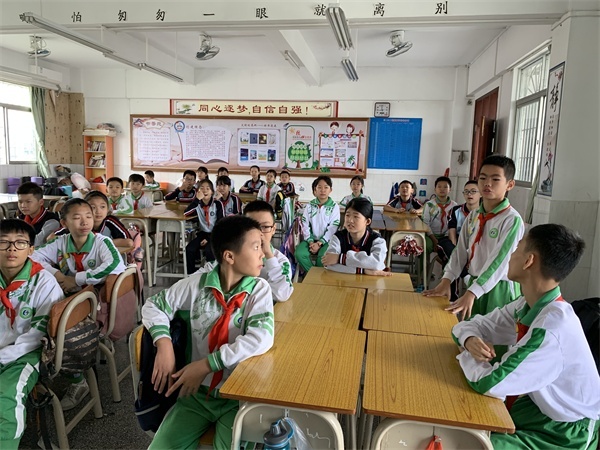 接着,由队员代表讲述爱国故事。先由中队长丁秋华同学讲爱国故事:远去支援疫情的铁战士。丁秋华同学声情并茂地给队员们讲述了古镇医院护士及医生远赴武汉参加抗疫新冠病毒的事情。队员们在疫情期间或亲身、或看电视、或听广播、或看网感受到抗疫的艰难,故事的内容得到了共鸣。