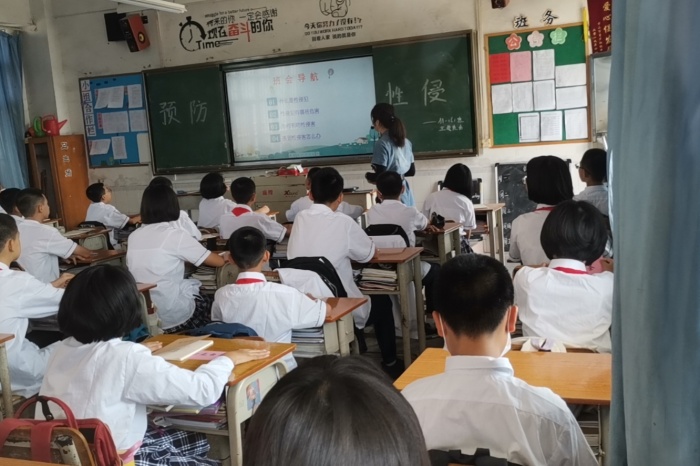 首先,一6班的班主任毛茜老师抛出了一个问题:什么是性侵犯?为了回答这个问题,老师给同学们播放了相关短片,总结了以下几点:一,触碰到隐秘的地方;二,看不健康的图片或视频;三,性侵害的人可能是自己亲近或信任的人。同时老师告诉大家侵害未成年人犯罪的人,足足达到了3.25万人。听到这里,不少同学大吃一惊,在心里捏了一把冷汗。