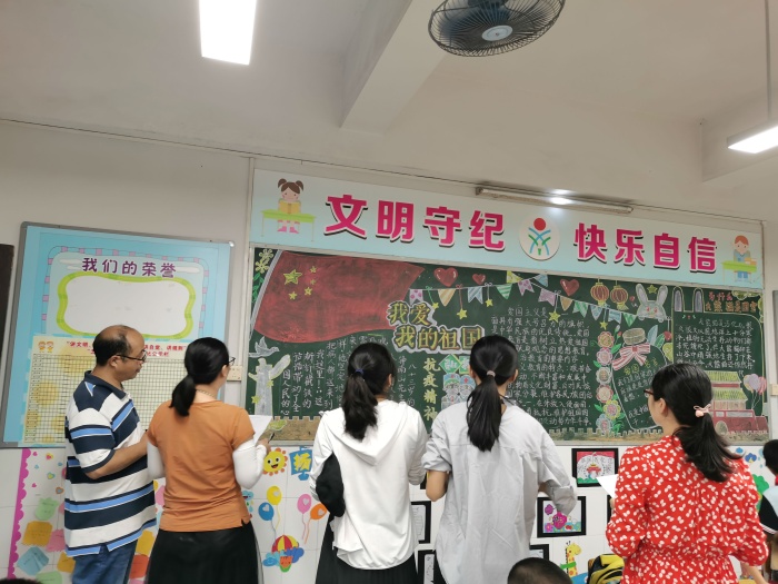 为了彰显班级文化布置的成果,学校德育组组织级组长、美术老师、少先队辅导员,对各班的特色班文化布置进行了检查。通过一个多小时的检查发现,各班均能根据学生的年级年龄特点,精心策划,让教室内的每一块墙壁、每一个角落都具有教育作用,彰显班集体和学科特色,让师生感觉“舒心”。最让人惊喜的是,班主任们精心安排,班级的黑板报,学习园地,都尽显了班级文化特色,都营造了美丽的“家”的感觉。