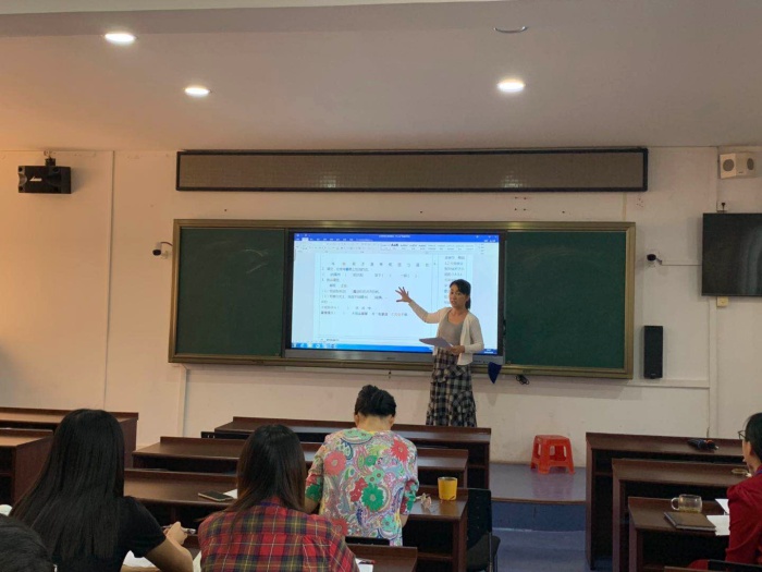 老师们经过精心的准备,以许市中学小组合作模式为蓝本,分年级纷纷上台对所备的略读课文进行说课。