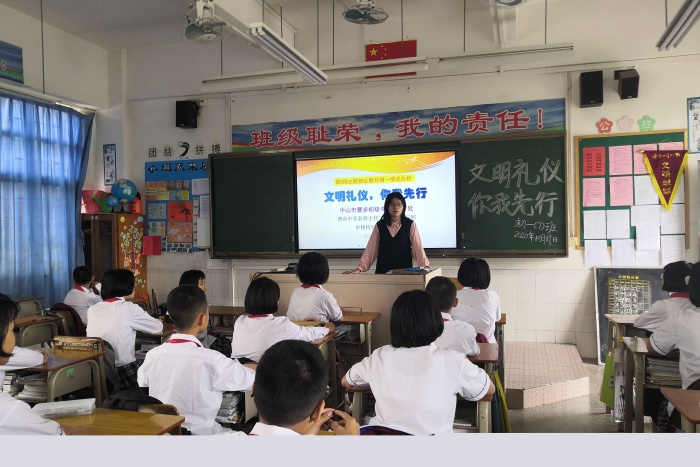 首先,班主任朱嘉琪老师向同学们提问:什么是文明礼仪?并展示各地出现的不文明行为,让同学们讨论交流。点出同学们在校园里遵守校规校纪就是一种文明礼仪。接着播放视频,同学们从视频里面学到:温暖的心也是一种文明礼仪,帮助他人更是一种文明礼仪。朱老师还让同学们选出班里的“文明使者”,倡导大家要向文明的同学学习。