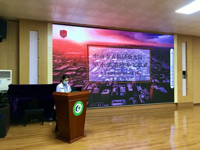 会上,由广东省居安消防职业培训学校的叶夏清老师主讲。叶老师不断强调安全的重要性,说道:“不注重安全问题就等同于慢性自杀”,紧接着叶老师播放浙江省宁波市一家日常用品公司发生火灾的视频,视频里由于员工对消防知识的无知直接导致重大火灾事故,造成多人身亡,场下观看的老师一片哗然,事前的防患于未然远比事后的弥补更有用。叶老师专门指出学校生活中容易被忽略的安全隐患,比如:安全通口被杂物阻塞、安全指示错误、使用的排插不符合规格等等,都容易发生火灾,不容小觑。