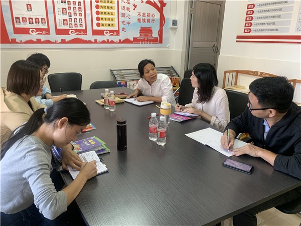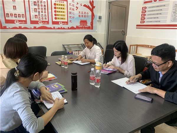 接着,英语科组长苏丽梅老师解读了学校工作计划和本学期英语组的教研活动计划,对本学期英语组的教学教研工作做了详细的安排和部署,带领大家认真的总结和反思了这几周以来的工作,指出了英语组的优势和存在的不足之处,老师们也从自身角度出发,认真反思了自己在教育教学中遇到的问题,互相交流了经验。组内形成了重研讨、重实践、重反思的教研氛围。最后,特别指导了新老师的导学稿设计。