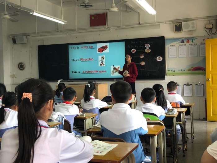 林捷漫老师执教四(3)班“Unit 6 Toys (Story)”。课前,林老师通过短片“George wants a dinosaur”作为切入,实现课堂激趣,并引入课题“Toys”。课中,林老师以问题串联课堂,提出问题“What does Gogo want?”,使学生在观看故事视频中进行那个整体感知,再聚焦到文中细节,让学生在阅读中找出问题答案。在教学过程中,林老师善于引导学生进行课文研读,并巧用板书思维导图,引导学生进行故事复述。课后环节,林老师设计小组角色扮演环节,教具多样,结尾以开放性问题“Why do they want Gogo?”作为升华,启发学生思考,实现迁移创新。