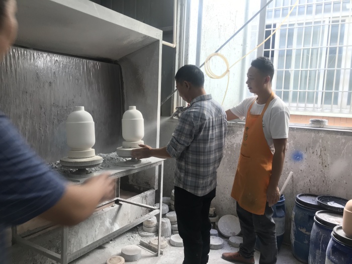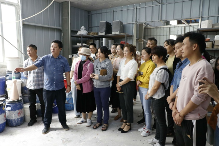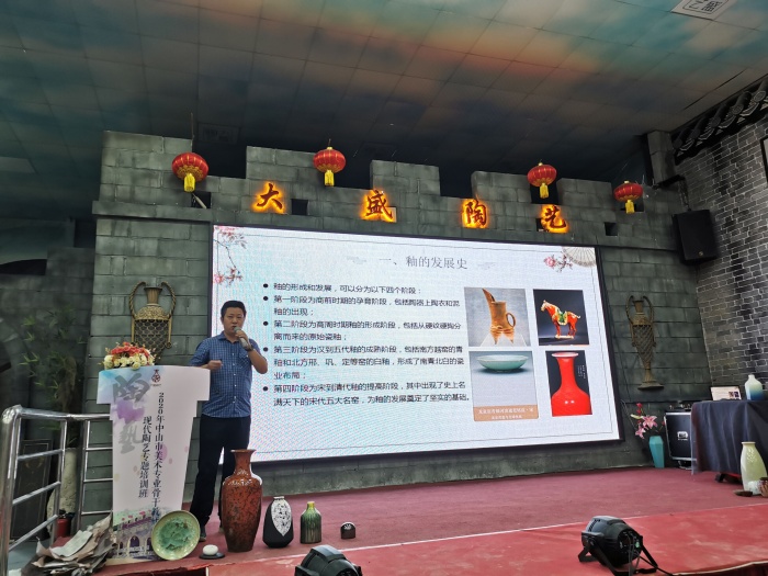23日,由中山市大盛文化传播有限公司崔俊老师为大家讲解陶瓷施釉技巧、陶瓷烧制原理与装窑技术教学与实践。崔老师将20多年丰富的施釉经验进行分享,他用最朴实的语言讲解何为釉,釉料的成分、釉料的种类分别有哪些,同时讲解了烧制温度要求,效果特点等,让教师们明白如何才能上好釉。随后,崔俊老师又通过实操展示上釉技能技巧,让老师体验和探索釉色的变化。接着,崔老师还分享了很多技能上的要点建议及心得,热情解答了陶艺教师们日常施釉遇到的问题。最后,在崔老师的带领下,全体学员参观了大盛陶艺馆制作的工作区间,了解了从陶泥到成品要经历的各个过程,让老师们体验了专业设备喷釉。