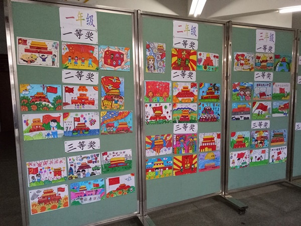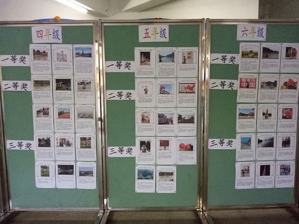 在全体班主任的督促指导下,学生都交上满意的作品。绘画作品主题突出,色彩搭配和谐悦目,充满喜庆的元素。特别是低年级的小朋友,他们的亲子作品更是经过爸爸妈妈的静心指导,线条流畅,活泼灵动,让人啧啧称赞。摄影作品就更吸引大家的眼球了!别看只是小学生的摄影,祖国大好河山、风景名胜,繁华城市、美好家园,红色基地、缅怀先烈……站在一个个展板前,能让人身临其境,驻足良久。