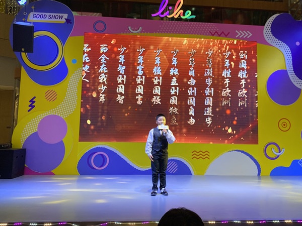 六5班区泳楠表演唱歌曲《江南》,她身着浅红色汉服,手持一支荷叶,俏皮可爱边歌边舞,台风稳健。获得二等奖。六5班钟林霞 同学演唱歌曲《长歌行》,歌曲出自汉代乐府诗,她身着一袭汉装走上舞台,美妙的歌声飘荡在整个大厅。另外两位代表曹二小学参赛演唱的是四4班郭志鸿和五2班熊禹添,他们演唱的歌曲出自清代梁启超《少年中国说》 ,他们身着中山装,铿锵有力的演唱迎来阵阵喝彩。