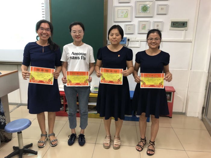 第三环节,为在青年教师素养比赛中获奖的教师颁奖,曾惠结老师逐一揭晓了名次。大赛中获奖的老师们,在大家热烈的掌声中登台,接受表彰。曾老师说:希望全体数学老师高度重视教师基本功的锻炼,认真备课,加强教学设计,精心准备高效实用的课件,坚持课堂实践后的教学反思,进一步提升教师综合素质,为把镇南小学建设成为一流学校而奋斗!