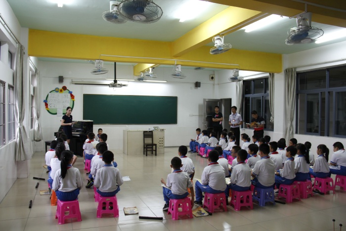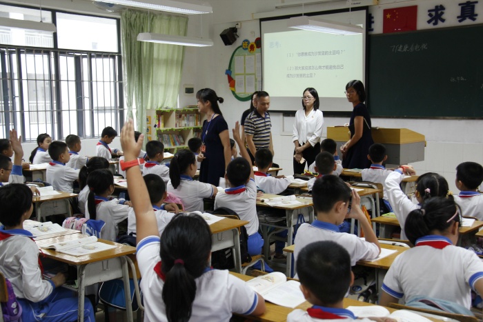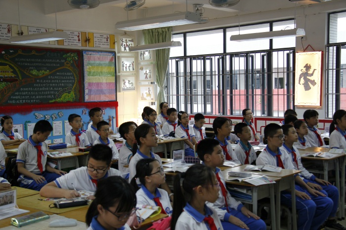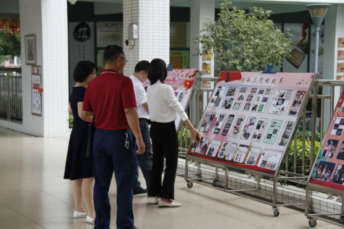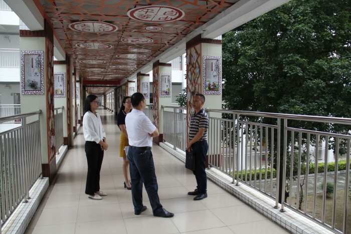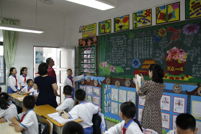 当天下午,在镇南小学廖秋菊副校长与余旭凤副校长的陪同下,评估组对德育、教学、办学特色、后勤四大方面,进行了全面深入的检查。在镇南小学全体行政的陪同下,评估人员对校园文化进行了巡视,干净整洁的校园环境、浓厚的艺术氛围、彬彬有礼的学生,都给评估组的领导留下了良好的印象。五1班“竹梦园”和六4班“皮影舍”作为学校特色班级代表,也接受了巡查。两个班级的特色鲜明,内涵丰富,班风班貌处处渗透出特色文化的韵味。学校学生自主管理、小组合作学习的开展,也让评估组成员耳目一新。他们还现场巡查了传统文化课、软笔书法课、劳动技术课、道德与法制课等课程开展情况,效果良好。