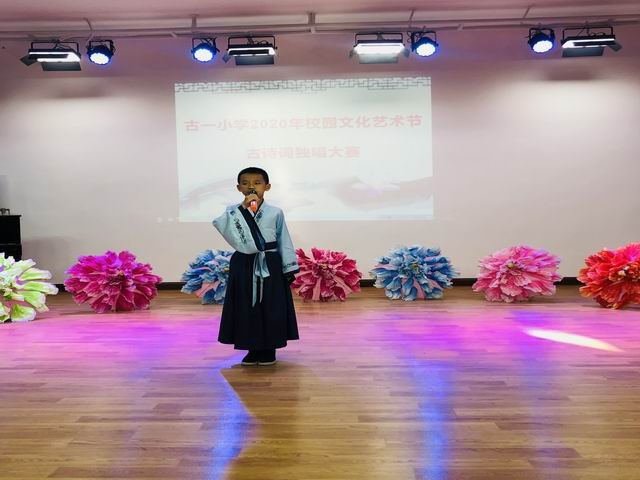 为了弘扬中华民族的优秀传统文化,让学生感受传统文化的博大精深,体味传统文化丰富的人文内涵,从古人的智慧和情怀中汲取营养、陶冶情操,培育青少年的民族精神,凝聚民族力量,10月27日,古一小学在报告厅举办了主题为“唱中华诗词、寻文化基因、品生活之美”的2020校园文化艺术节之“古诗词”独唱比赛低中年级半决赛,三(1)班的四位同学积极参与。
