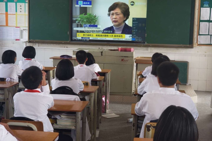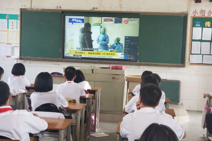 首先陈老师通过观看视频让同学认识新冠肺炎的基本常识及日常生活学习中如何防疫。接着大家又观看了视频《共同防疫,校医齐出招——安心图书馆》,了解到安心图书馆需要大家共同努力,学校图书馆的管理员应该每天做好图书馆的卫生清洁、通风、桌椅、地板、书柜消毒等工作,营造安全清洁的公共场所。而同学们进入学校图书馆也要严格做好防疫措施:自觉戴好口罩、间隔一米距离就座、及时对双手进行消毒等。最后,同学们结合视频和自己的认识积极发言,再次明确自己去图书馆必须要做好的一些防疫行为。