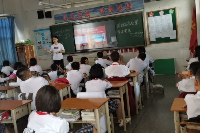 第二部分:盘老师开始讲述起了疫情防控的重要性,并给同学们播放了一条视频,演示了新冠肺炎疫情的应急处置。