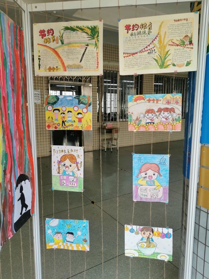 同学们在学校文明教育的倡议下,自觉抵制不良风气,加强勤俭习惯修养,增强自律意识,力争当好反对铺张浪费的表率。在平时的日常生活中同学们本着不浪费一粒粮食的原则,争做做“光盘行动”的小标兵。此外,各个年级先后开展了“节约粮食、反对浪费”绘画比赛、 “节约粮食、反对浪费”手抄报评比等活动,积极宣传餐桌文明知识,倡导餐桌文明行为,大力提倡文明用餐的良好风气,培养健康文明的餐饮文化,使同学们充分的认识到“光盘” 行动的重要性。袁美欢老师并把获奖作品在校园内张贴展览,给同学们一个美的熏陶。