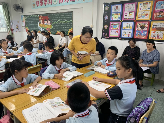 2020年10月28日下午第一节,语文科组教师齐聚三(2)班教室集中听课,为大家带来课例展示的是容萱慧老师,执教篇目为部编版小学语文三年级上册第七单元口语交际——身边的“小事”。容老师教态自然,与同学们亲切互动,通过生活中的实际示例,详细讲解时间、地点、人物与事情四要素,运用小组合作,让同学们进行充分的交际训练。课后,老师们在会议室进行评课。首先,容老师从教案设计,课堂环节两个方面阐述了本课的设计意图。老师们以本节课为立足点,结合口语交际教学,给容老师提出了听课的意见与建议:语文教师应紧紧把握口语交际教学目标与教学重难点,关注并落实学生思想道德教育。同时,善于运用小组合作,采用形式多样的合作方式,让学生在口语交际课堂乐于开口,勇于表达。