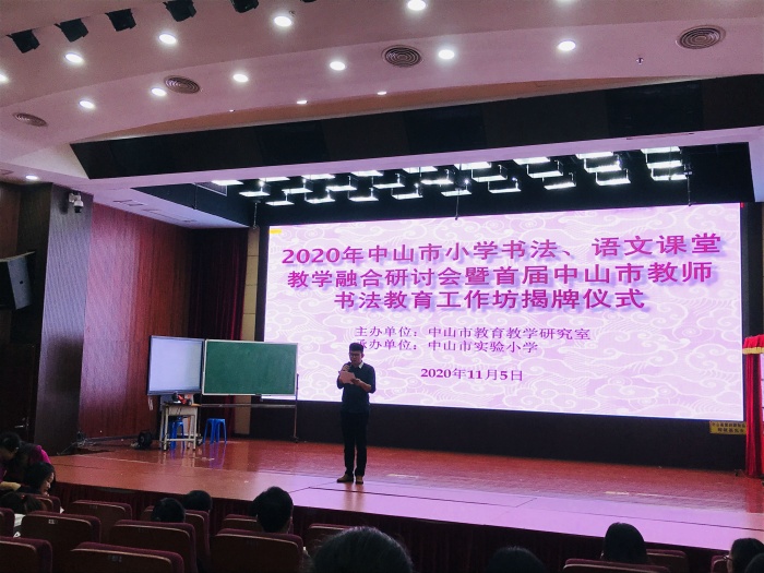 打印 |为加强中山市书法精品课程研用结合,推动中小学书法教学与小学语文书写教学课堂融合实践,突破跨学科教改难点,提高中山市中小学生书写和书法水平,探索基于书法教育工作坊与中小学书法、小学语文写字教研的新路径,11月5日上午,中山市教育教学研究室特举办2020年中山市小学书法、语文课堂教学融合研讨活动暨首届中山市教师书法教育工作坊揭牌仪式。镇南小学的郭淑玲老师参加了此次活动。