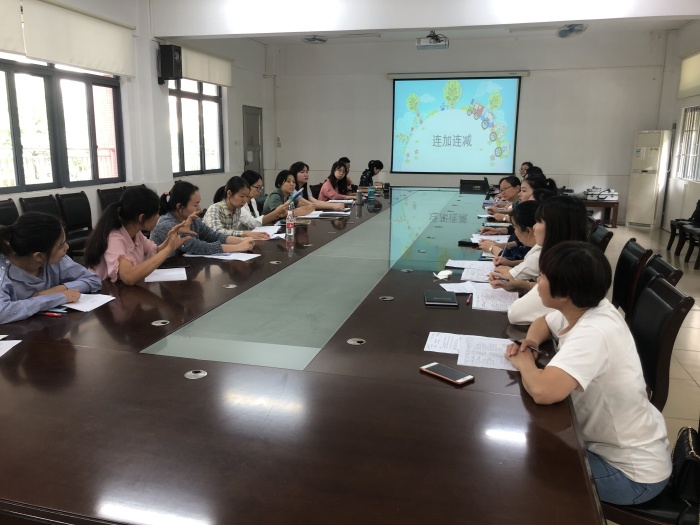 第二环节,备课团队就这堂课的知识点在起因、学情与教材、教学目标、教学方法等方面进行阐述。一年级备课组长李春霞老师认为:连加连减这一知识点经常用来解决生活中的问题,它不但是对加减法含义的拓展,也是新课标提出的人人都能获得必要的数学这一理念的体现。这节课通过小组合作,教师注重让学生说,去表达,培养学生的观察能力和表达能力。