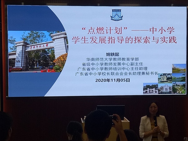 今天邀请来主讲的专家是潘莉硕士和姚轶懿主任。上午主讲的是潘莉硕士,她是暨南大学硕士,广东省中小学名班主任,珠海市名班主任工作室主持人,主讲的题目是《情绪情感策略在中小学德育工作中的运用实践》。下午主讲的是姚轶懿主任,她是华南师范大学教师教育学部院长助理、华南师范大学省级中小学教师发展中心副主任、广东省中小学校长联合会会长助理兼秘书长,她主讲的题目是《“点燃计划”——中小学学生发展指导的探索与实践》。