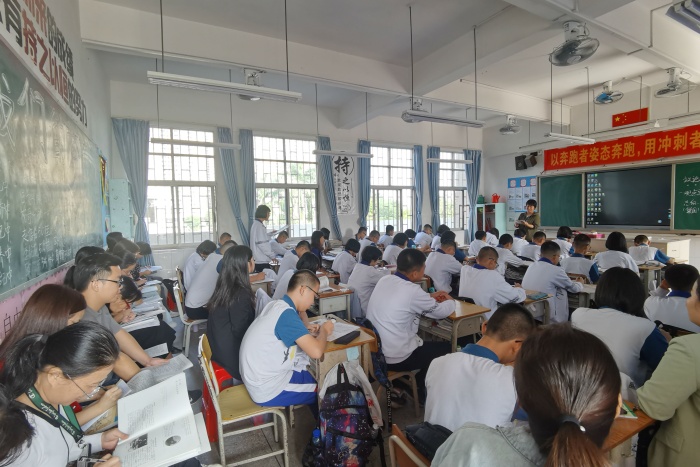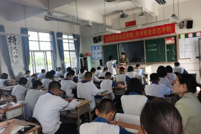 第一个环节是陈小玲老师在初三(7)班的公开课。陈老师本次的讲课内容是议论文写作,首先是谈话导入,讲解议论文写作的重要性。接着是检查预习,学生将导学稿上议论文的论点按句式进行分类,陈老师及时进行评价。然后是学生对导学稿中的观点提炼并进行讨论,最后是学生回答,陈老师进行精准点拨。