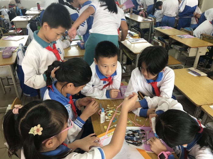 11月5日为镇南小学劳动教育课例展示时间,学校安排了何春玲老师执教五年级上册《衍纸字母》。本次劳动技术展示课经过两轮试教、研讨集体备课。课前老师和学生在工具和材料上都做了充分的准备,学生做了基础造型。课堂上,何老师通过视频导入,展示自己的劳技作品来激发学生学习兴趣。在明确学习任务后,在自主学习、合作探究中环节中,学生经过分工合作,修改和完善课前的设计图,然后展示汇报成品。学生对作品进行点评,最后老师对本课作出总结。学生们在课堂上表现活跃,参与度高。在学生展示成品这一环节,学生能介绍使用的基础造型,也能说出作品的表达意图或与原作品相比的创新之处。其中不乏优秀之作,这些作品字母大小均匀,色彩搭配合理,整体效果协调美观,比较理想。这节课受到同学们的喜爱,也获得老师们的一致好评。课后全体教学行政及劳动教育教师集中评课,并对本次教研周活动进行总结反馈。