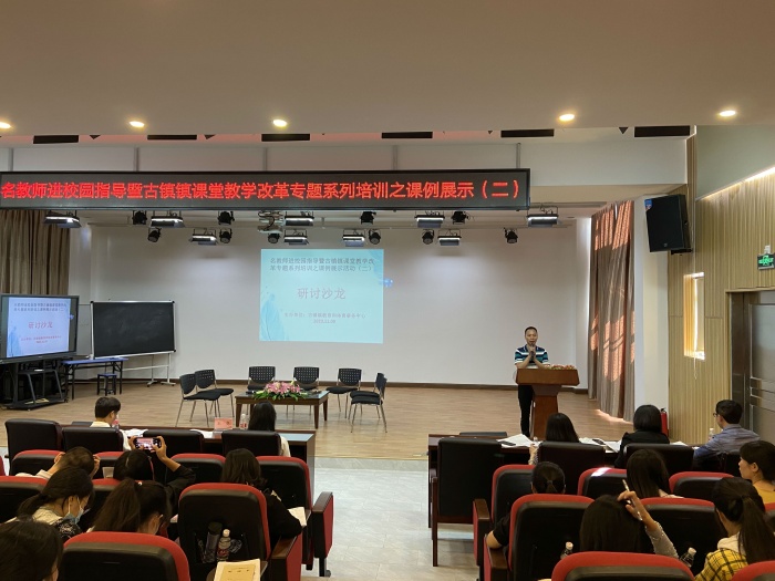 11月9日上午,在古一小学进行专题课例展示和评课议课活动。首先,古一小学刘娇娇老师呈现课例《比的应用》和古一小学李青黎老师呈现《圆的面积》课例。两节课都采用了许市中学的教学模式,以“课前回顾、明确目标、自主检测、新知探究、新知应用、能力提升和总结提升”等环节开展教学,课堂采用了小组合作的教学模式,合作要求明确且有层次,合作小组成员角色分明,承担了汇报、质疑、提问的角色,在活动中充分调动学生的积极性,体现学生学习的主体性地位。随后,开展了关于课例的评课议课的专题活动。湖南省岳阳市许市中学副校长王竞对两节课进行点评,肯定了两位老师的精心备课和上课,结合课例阐述了许市中学教学模式7个步骤的关键,并指出了这两节课需要改善的地方,并提出改进的建议。最后,古镇镇数学中心组长许琰主任认为,在研究许市中学教学模式时,需引入本土化的理解,需明确学习目标,用儿童化的语言表征学习目标,数学课堂需体现数学的思想和逻辑,体现数学的本质。