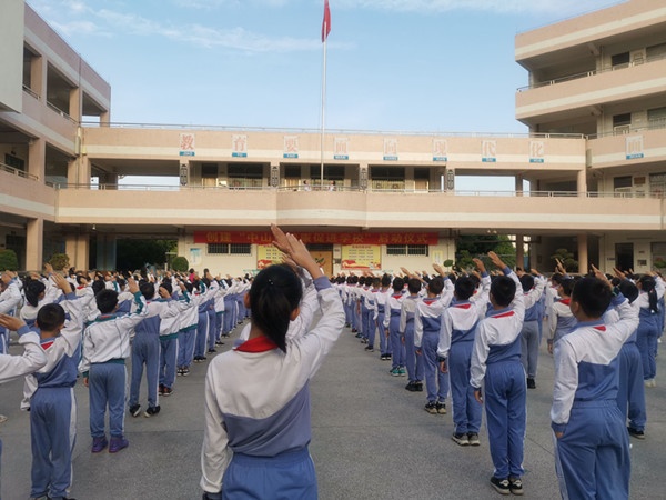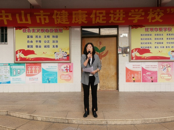 11月9日早上,秋高气爽,阳光明媚,随着主持人激情满满地宣布:古二小学创建“中山市健康促进学校”启动仪式现在开始!中山市古镇镇古二小学创建“中山市健康促进学校”行动拉开了帷幕。本次活动全校八百多名师生参与,袁洁云校长发出“健康与幸福同在,安全与和谐同行”的行动口号,并向全体师生倡议:1.追求健康,把投资健康作为最大的回报;2.积极参加体育锻炼,增强体质;3.吃营养健康的食物,远离垃圾食品,合理搭配膳食结构,规律用餐,保持营养平衡;4.充足睡眠,早睡早起保证上课认真听讲和复习的效率;5.每天足量补水,健康饮水;6.加强心理健康意识。