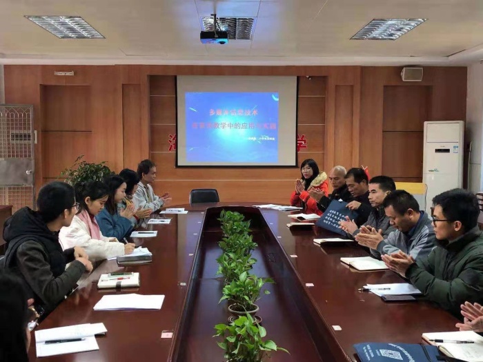 最后,科组长袁玉清老师做活动总结。袁老师提出,随着信息技术的发展,计算机多媒体技术和网络被广泛地应用在外语教学中,本次教研活动采用上研讨课,说课评课、专题讲座等形式进行英语科组教研活动,有助于提升教师信息化教学水平,实现信息技术与课堂教学的有效融合,提高课堂教学效率和教育教学质量。