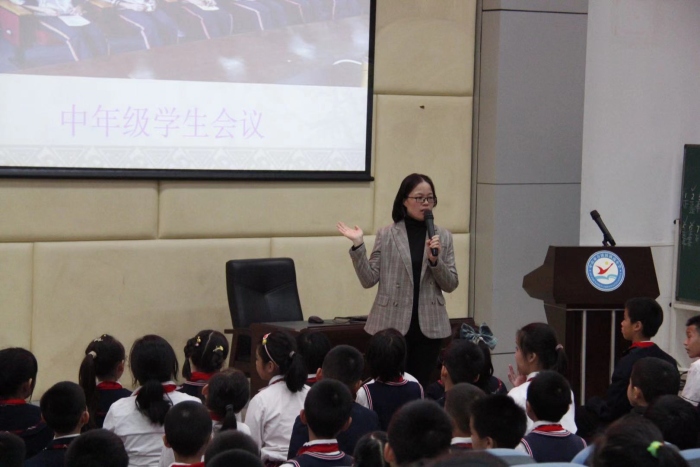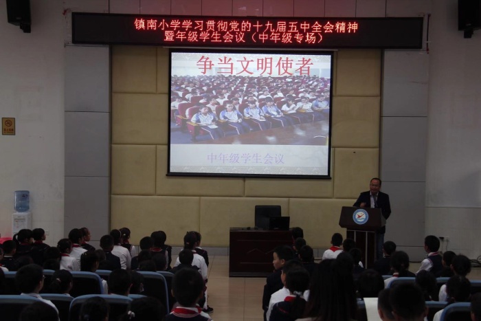 打印 |为了促进学生的全面发展,提升学生的品行素养,端正行为习惯,调动学习积极性,12月28日下午,镇南小学组织学生参加贯彻党的十九届五中全会精神暨年级学生会议(中年级专场),中年级全体学生和班主任、科任老师都积极参与。会议分为两个环节: