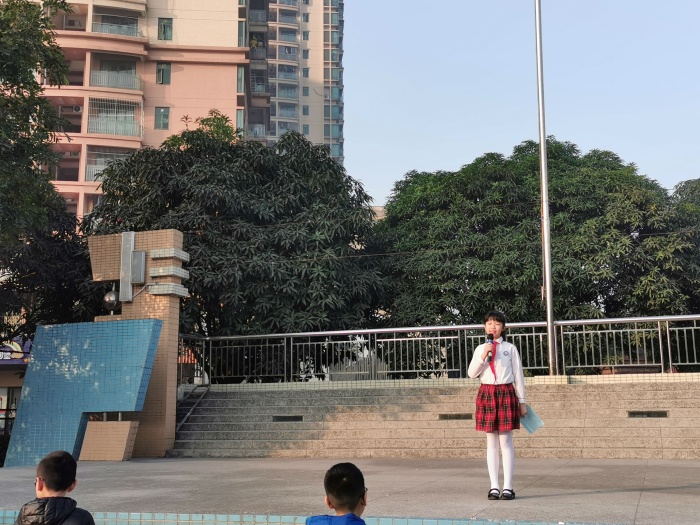 讲话最后,区梓慧同学呼吁同学们行动起来,为了共同的家园,做好垃圾分类,为地球做一件好事。无论是在校园,还是在家里,或在公共场所,同学们的“举手之劳”成为一种习惯,一种素养,一个航标。用自己的行动感召家人以及周围的人,参与垃圾分类,让地球更美!