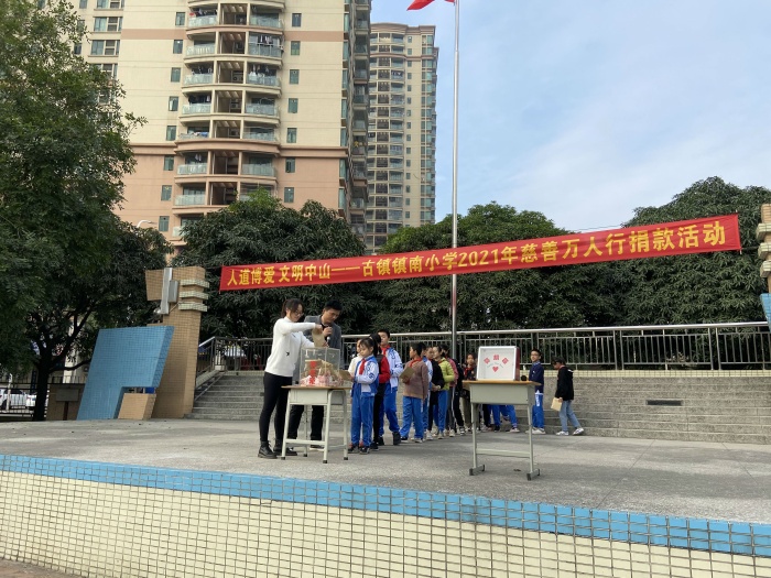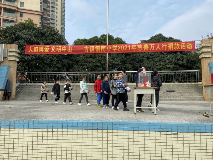 打印 |为发扬慈善博爱的传统,弘扬无私奉献的精神,促进社会各项事业的进步,建设幸福和美的中国灯饰之都。中山市古镇镇红十字会、古镇慈善会向全镇人民发出主题为“人道博爱,文明中山——为新古镇人民医院建设添砖加瓦”的公益筹款活动倡议,镇南小学积极响应号召,于12月24日进行了慈善万人行捐款活动。